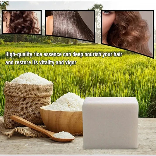 Rice Hair Care Soap Essence Nourishing Hair Smoothing Split End Repair Shampoo Soap for Men Women