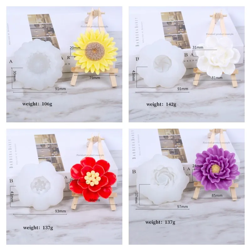 3D Rose Candle Silicone Mold DIY Lotus Peony Chrysanthemum Shape Mousse Handmade Soap Aromatherapy Epoxy Resin Molds